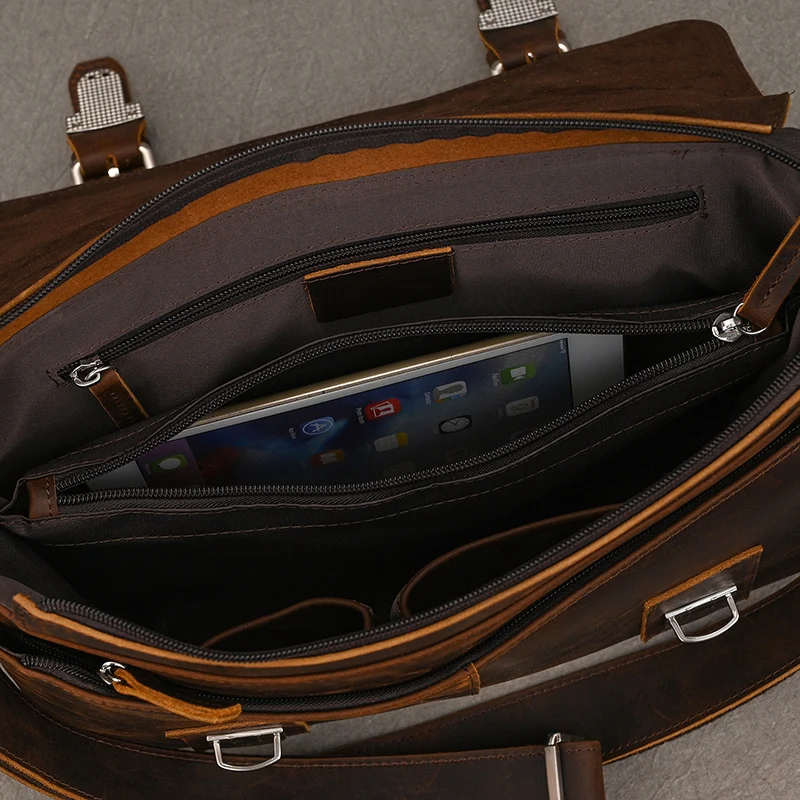 Vintage Crazy Horse Leather Men’s Briefcases Daily Office Bags Fit 9.7″ iPad Men Cover Messenger Bags Men’s Shoulder Bag Handbag