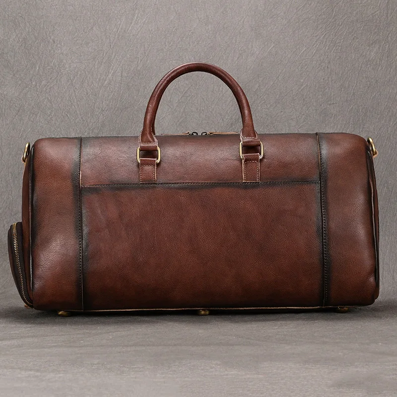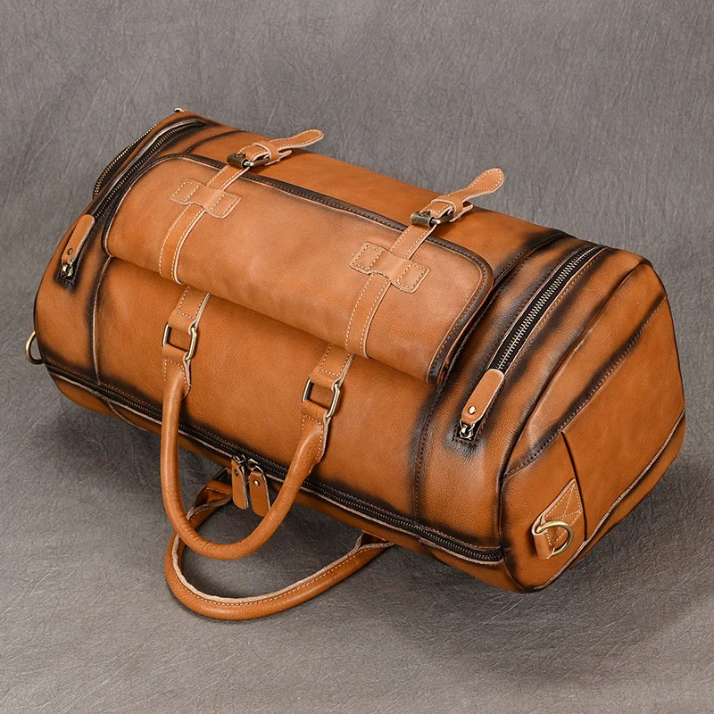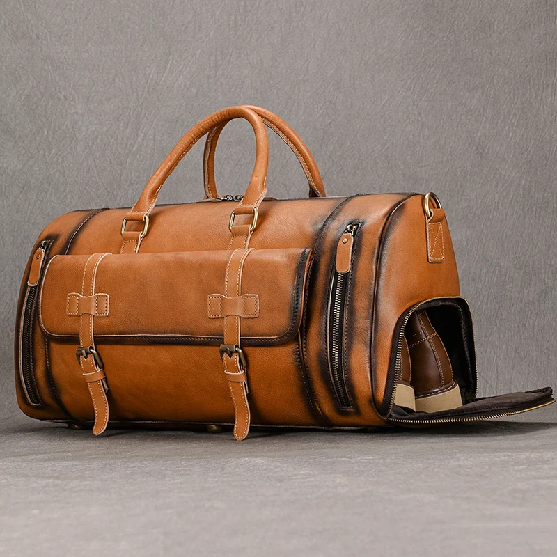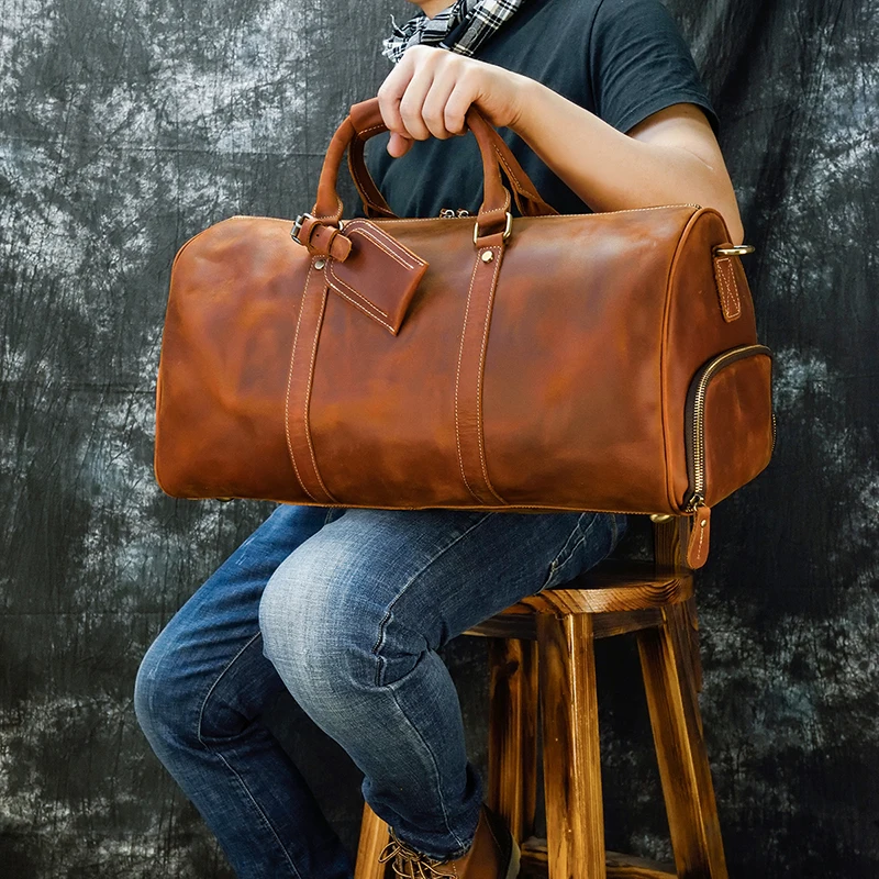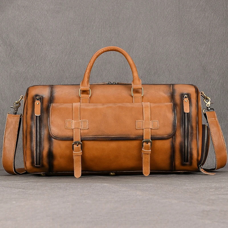 Vintage Fashion Handbags For Men Genuine Leather Travel Duffles Travelling Shoulder Bag Cowskin Hand Luggage Bags Large Duffle