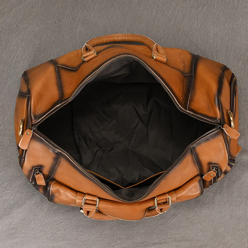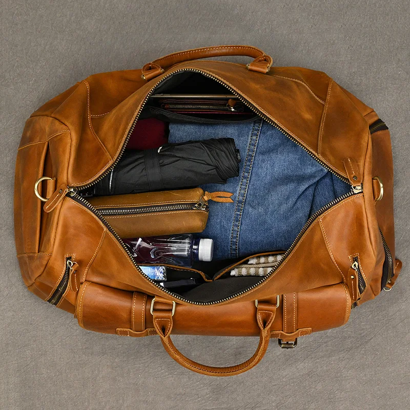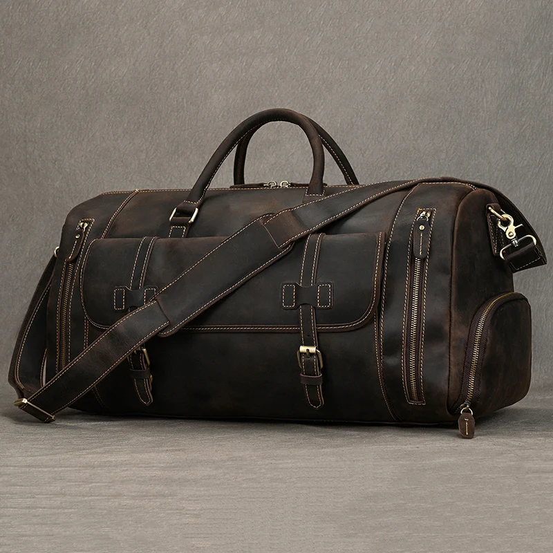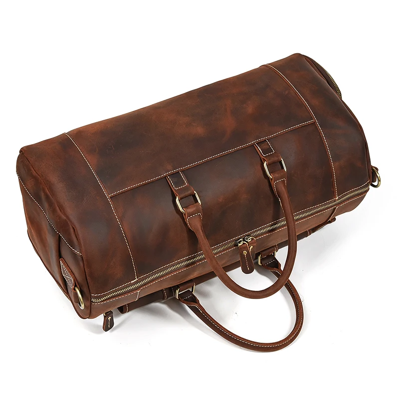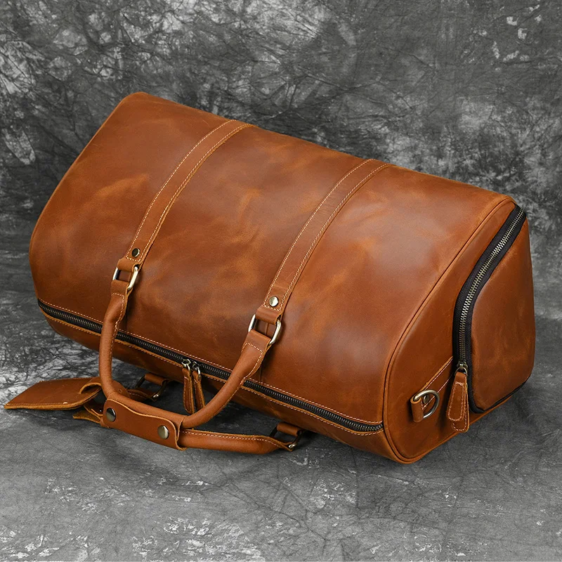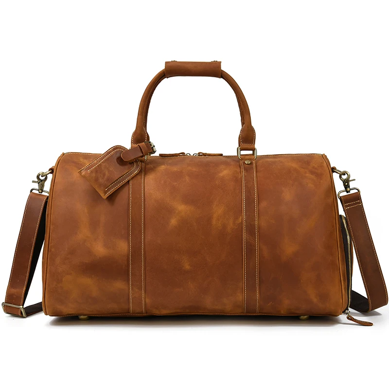 Vintage Fashion Handbags For Men Genuine Leather Travel Duffles Travelling Shoulder Bag Cowskin Hand Luggage Bags Large Duffle