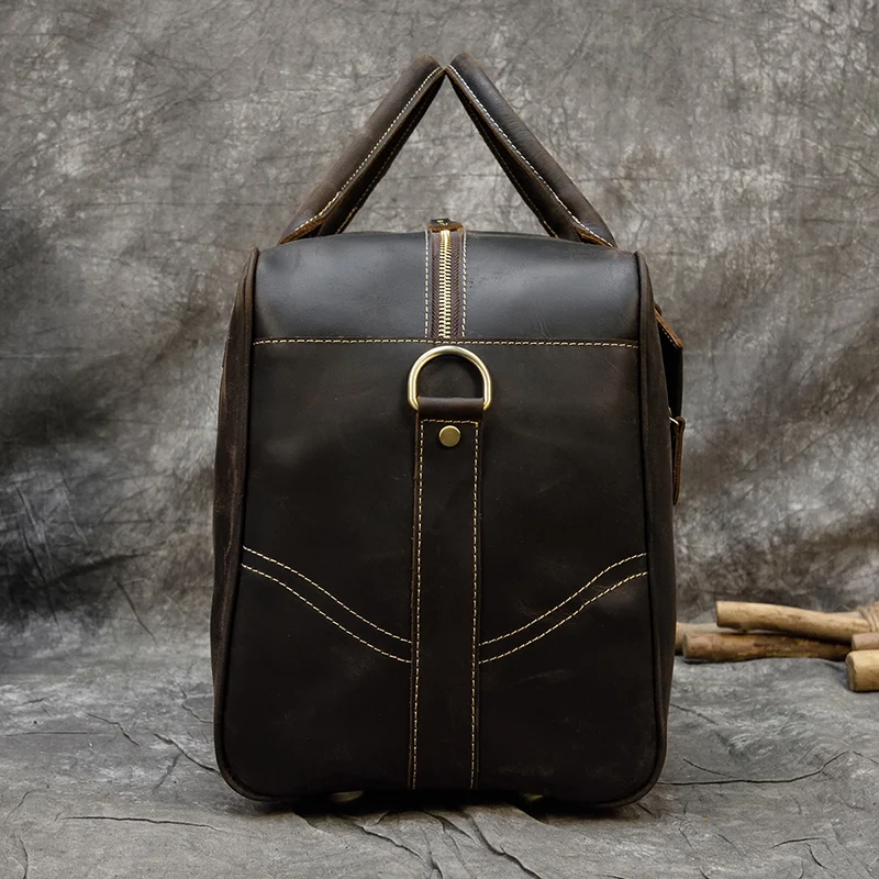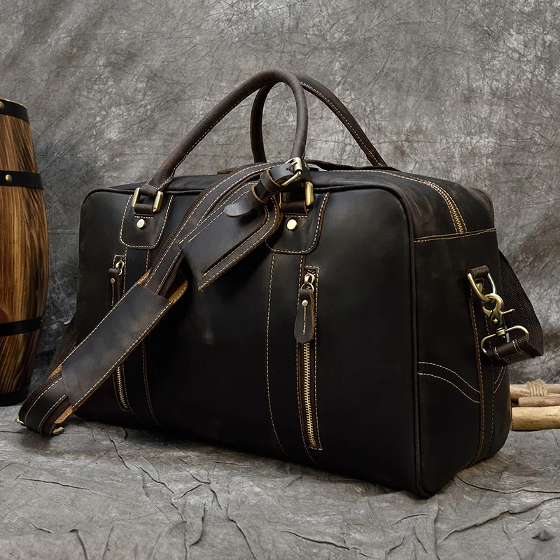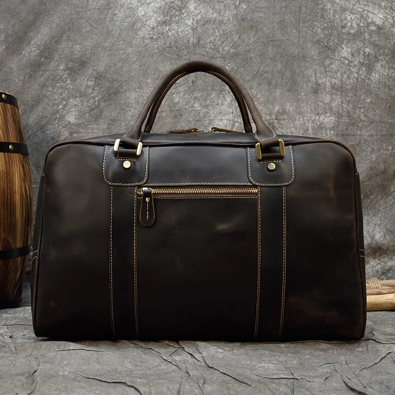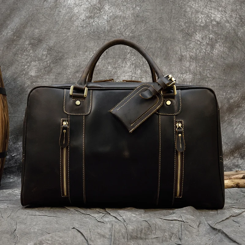 Vintage Leather Travel Bag Crazy Horse Leather Fashion Handbags For Man Male Leather Duffle Bags Brown Weekender Bag