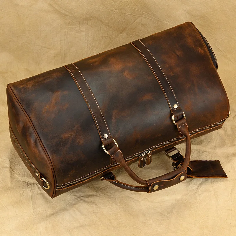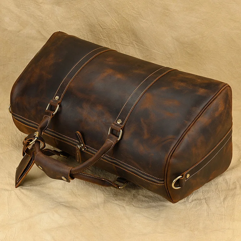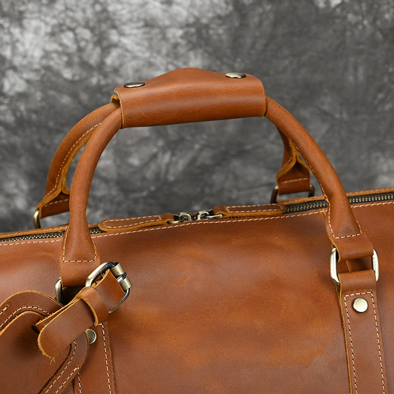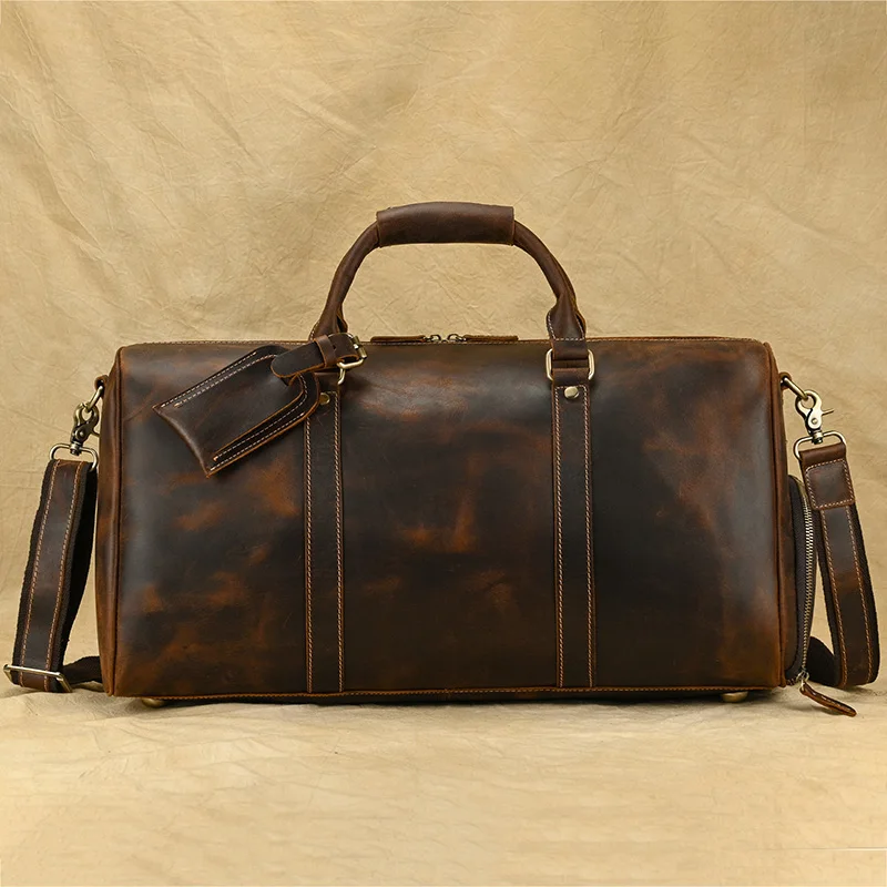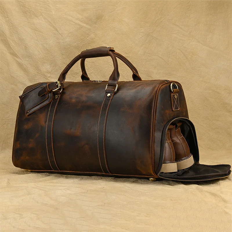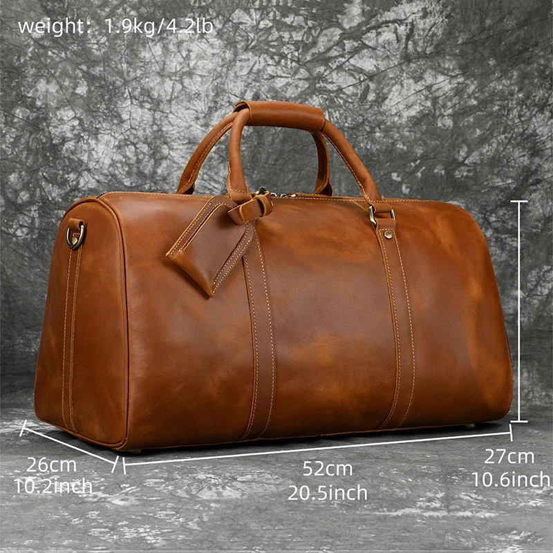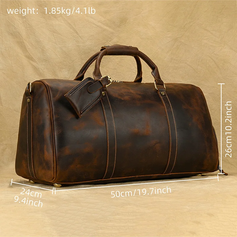 Vintage Leather Travel Bag Men Big Capacity travel hand luggage for male weekendd tote bage family travel bag luuage shoe bag