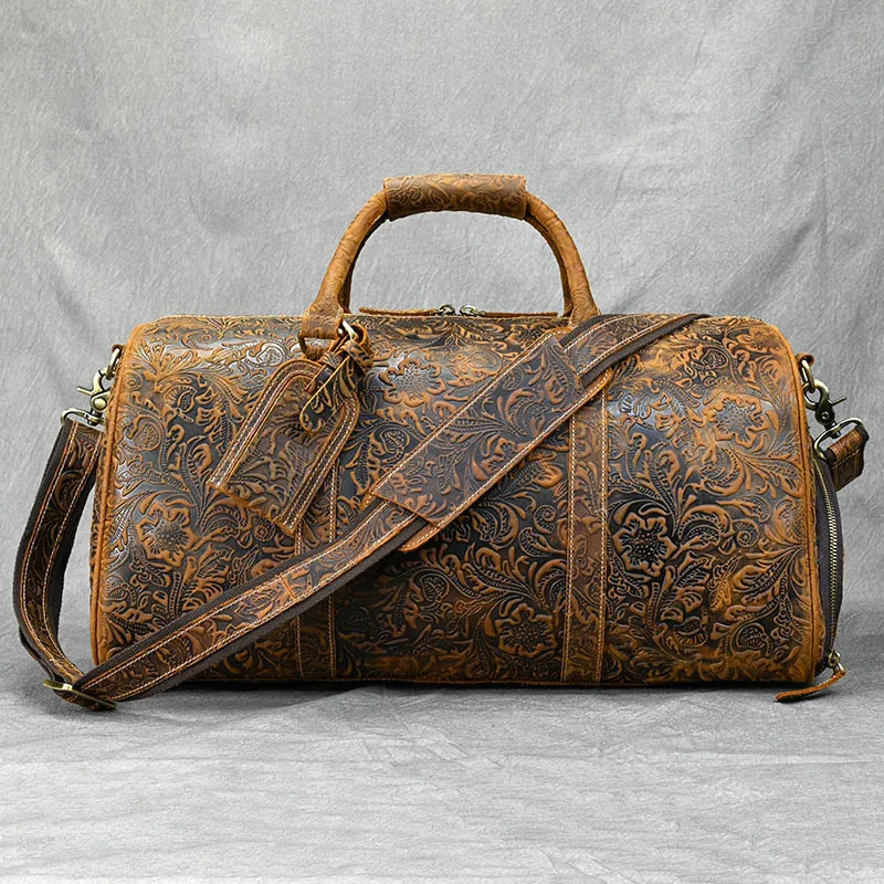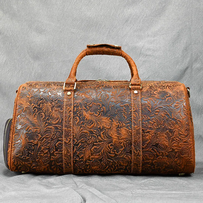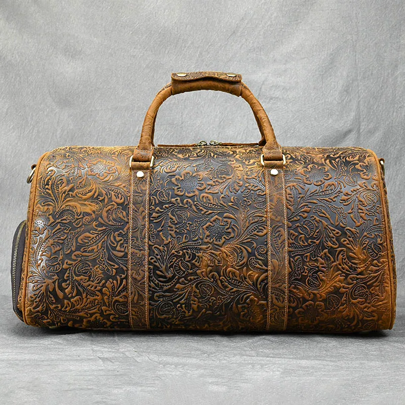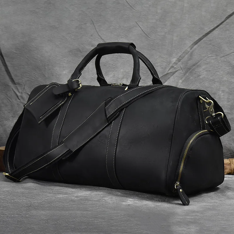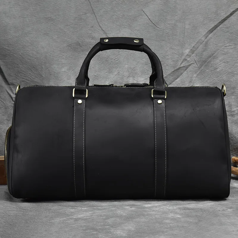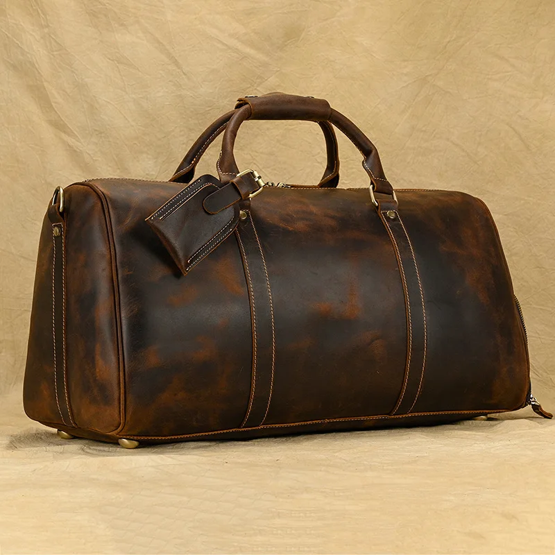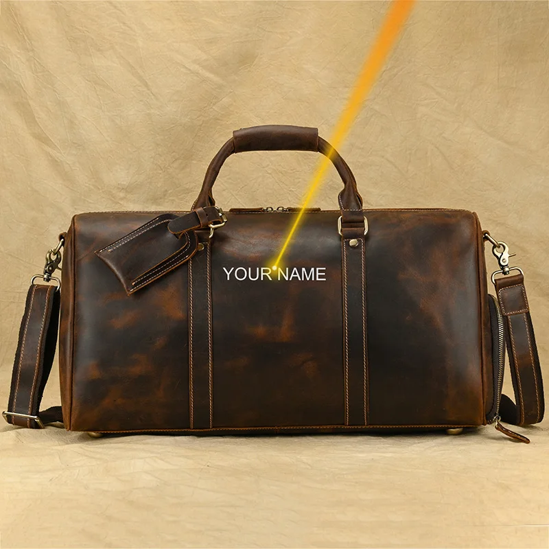 Vintage Leather Travel Bag Men Big Capacity travel hand luggage for male weekendd tote bage family travel bag luuage shoe bag