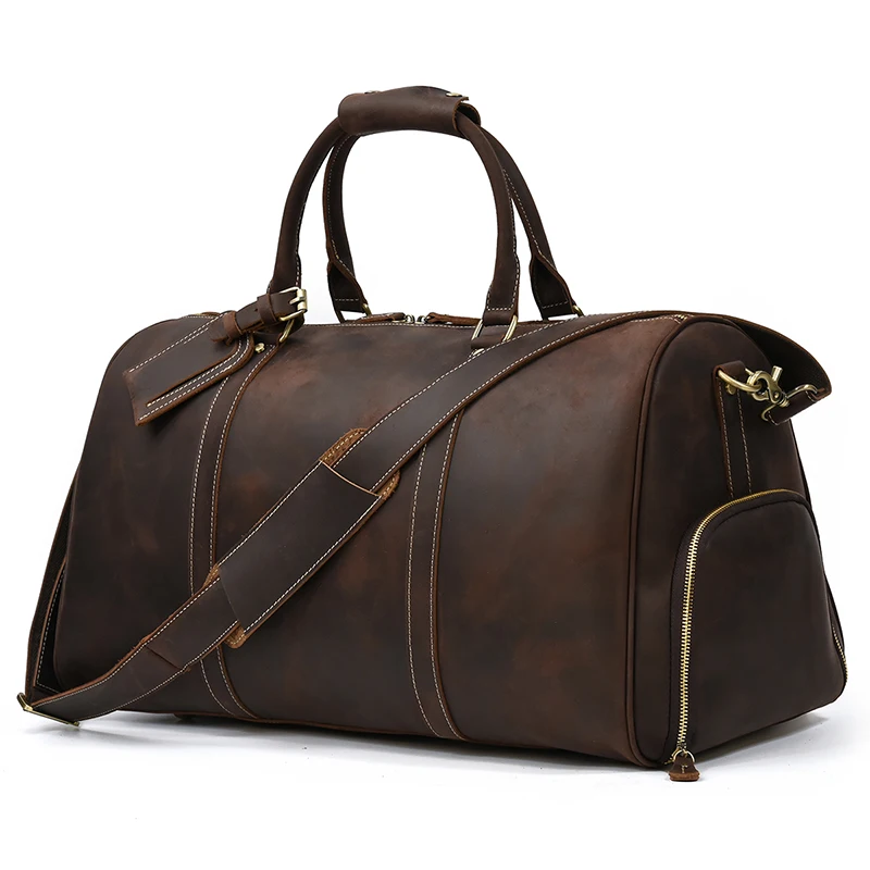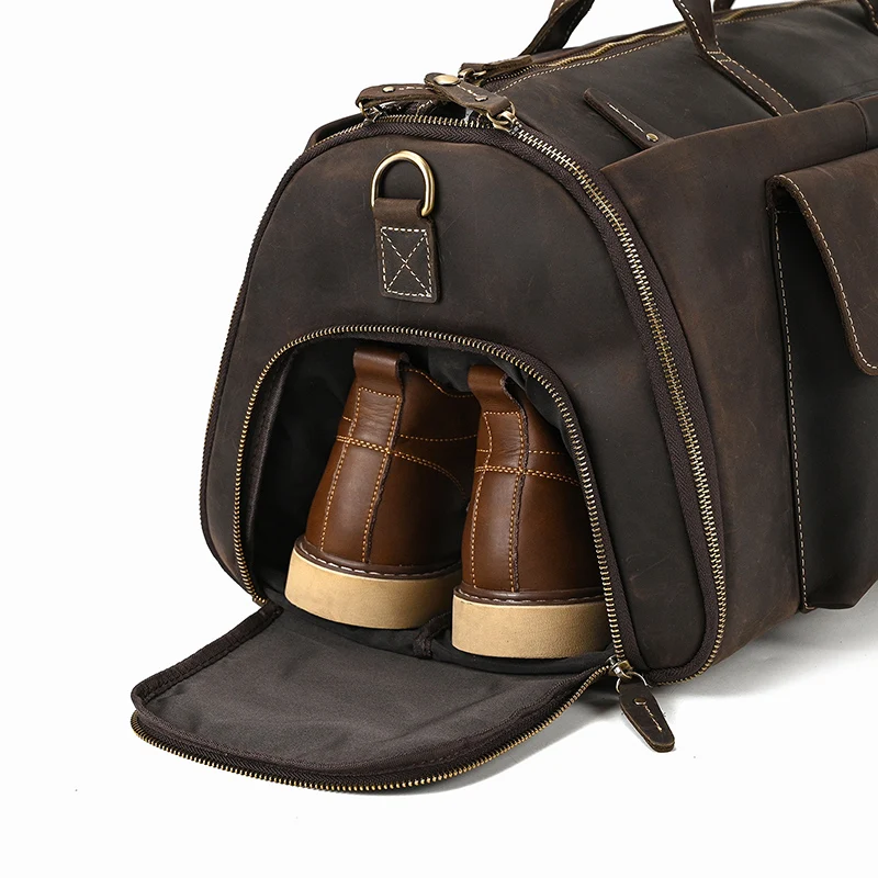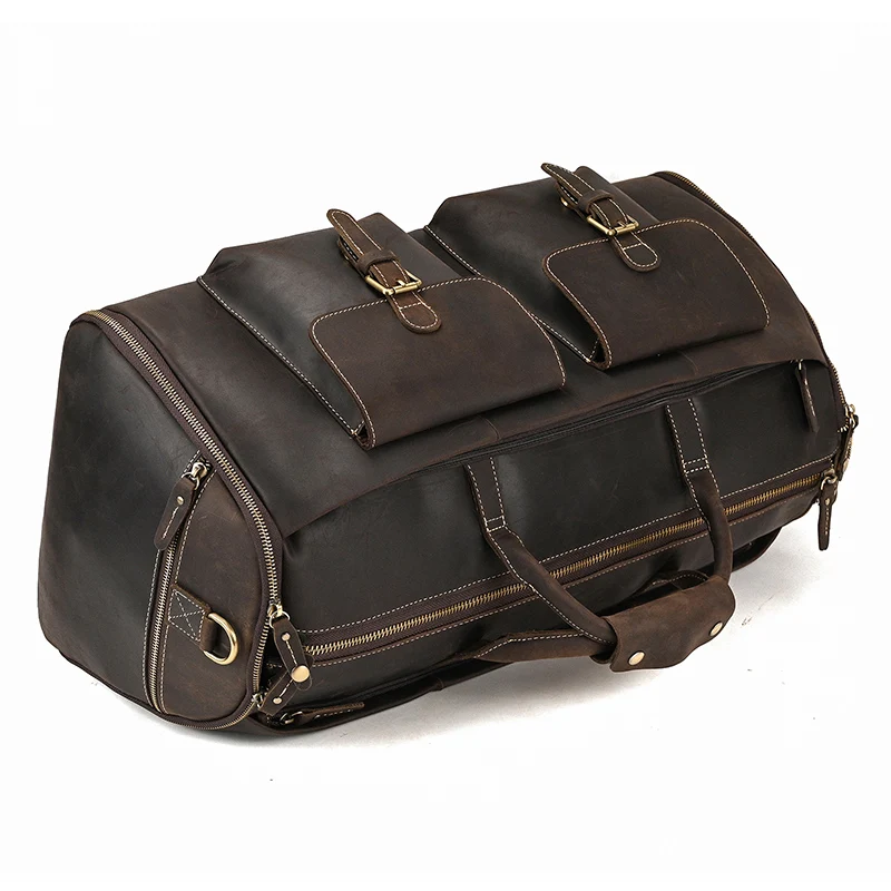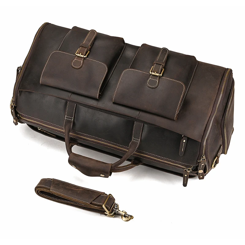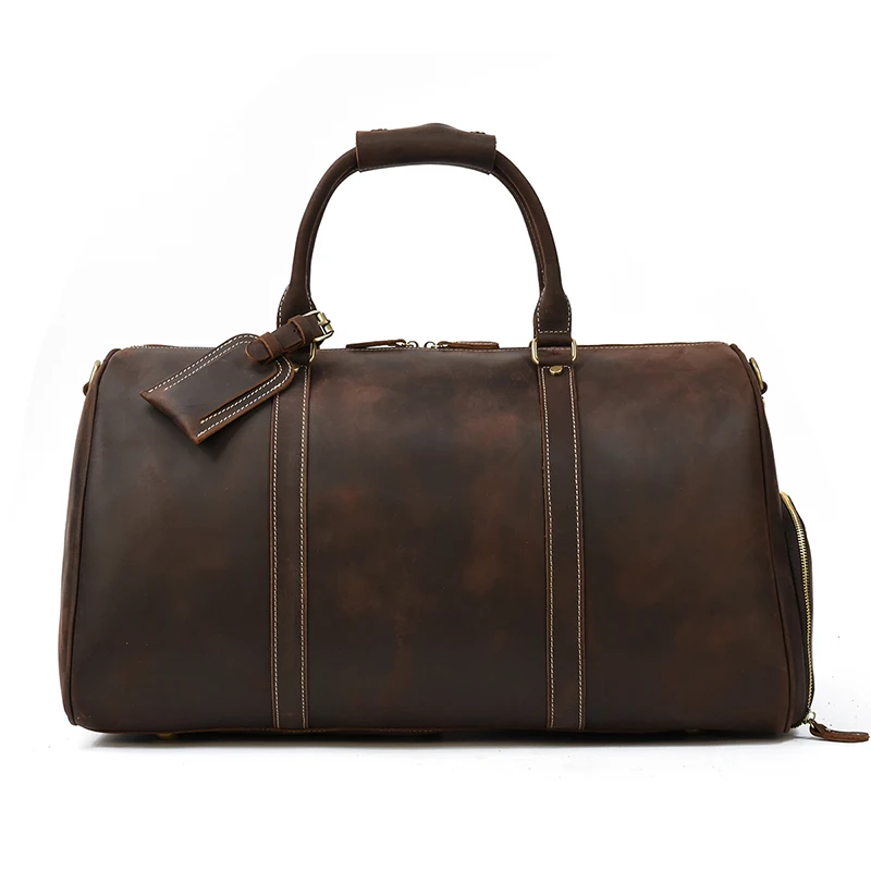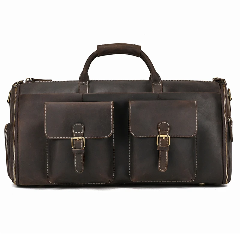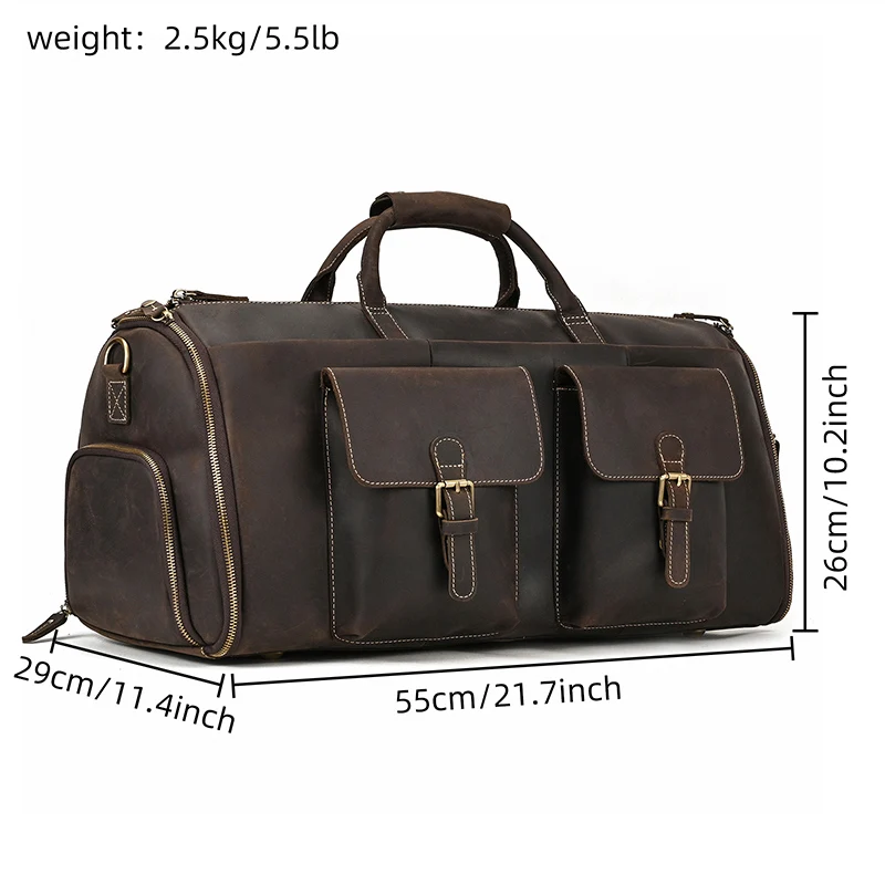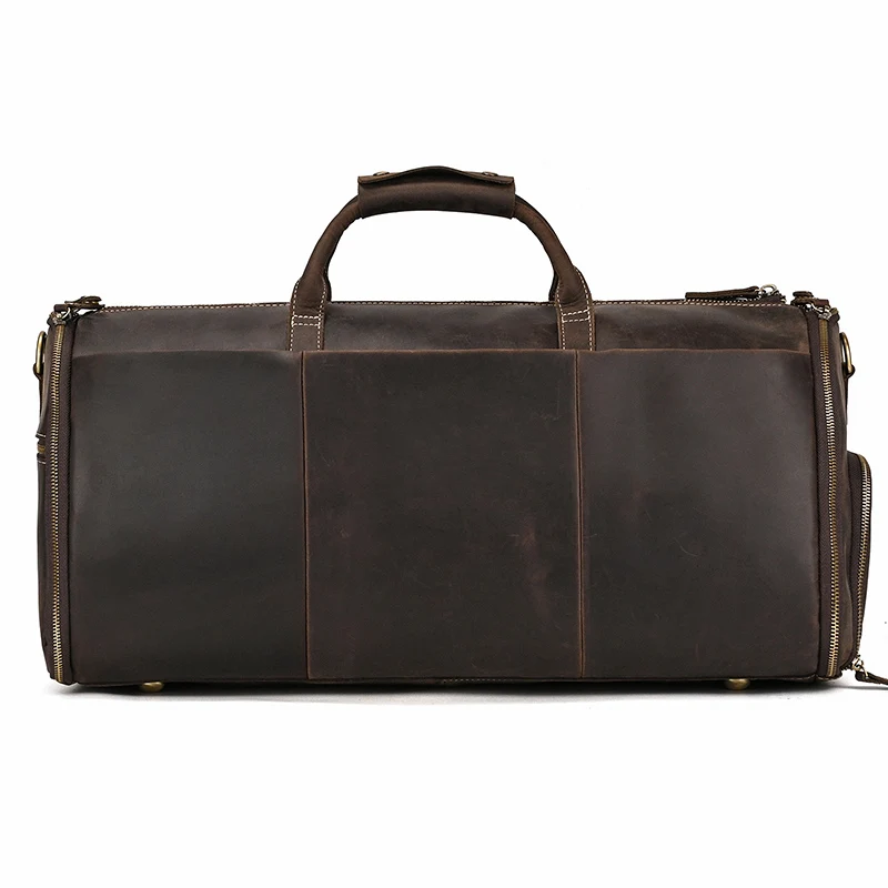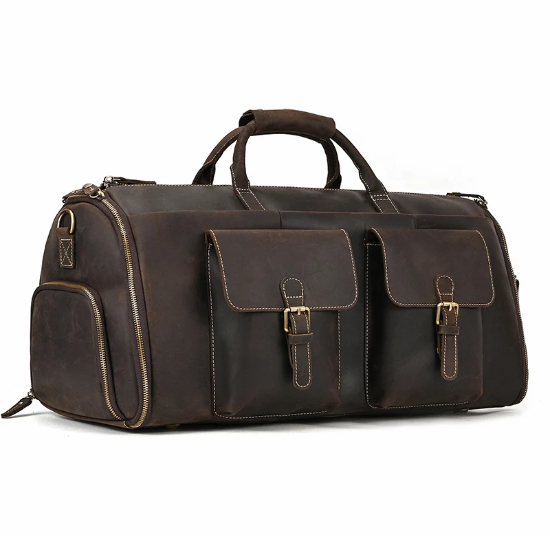 Vintage Luxury Travel Handbags Top Grade Travel Bag With Suit Compartment Garment Genuine Leather Suit Bags For Mane MaleTravel