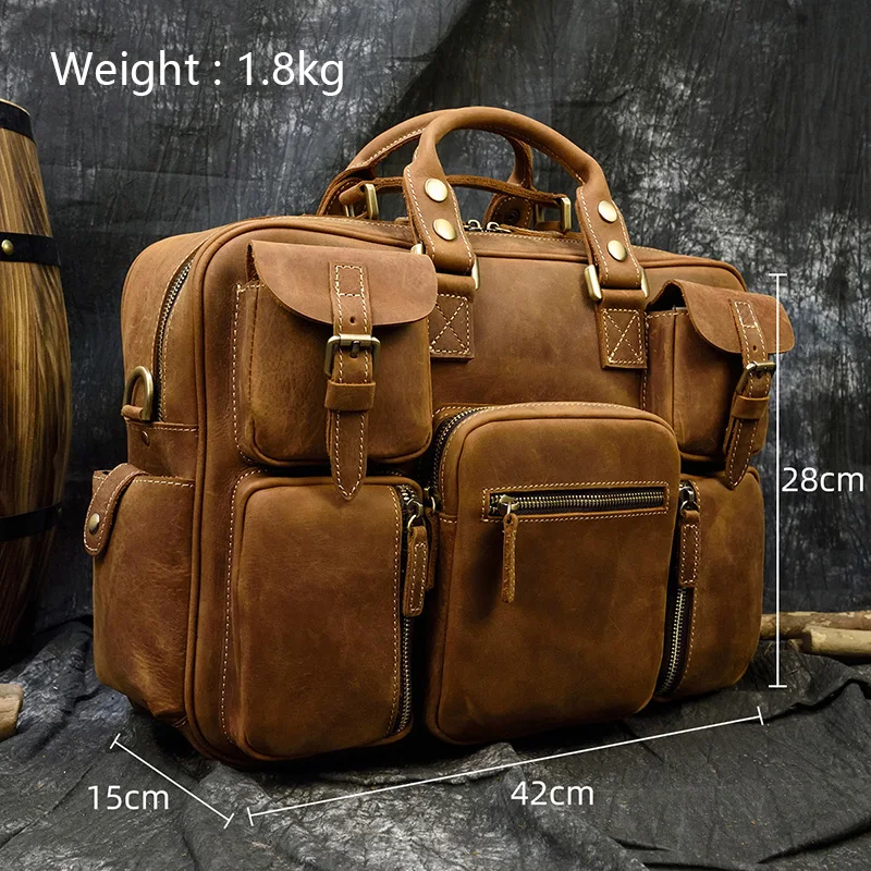 Vintage Men Crazy Horse Leather Briefcase Large Laptop Genuine Leather Business Bag Work Tote Travel Bag Cowhide Messenger Bag