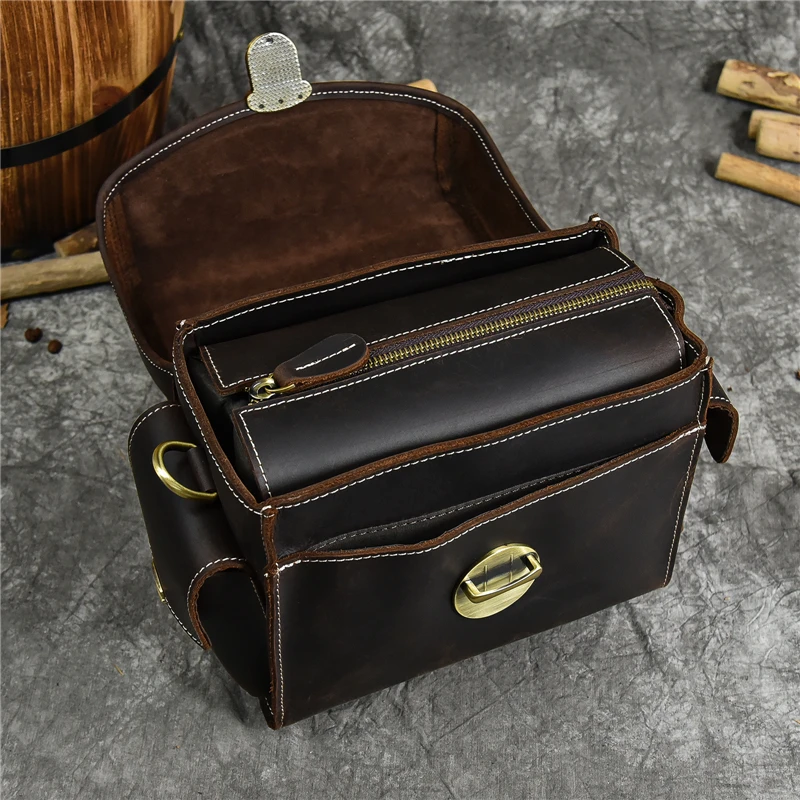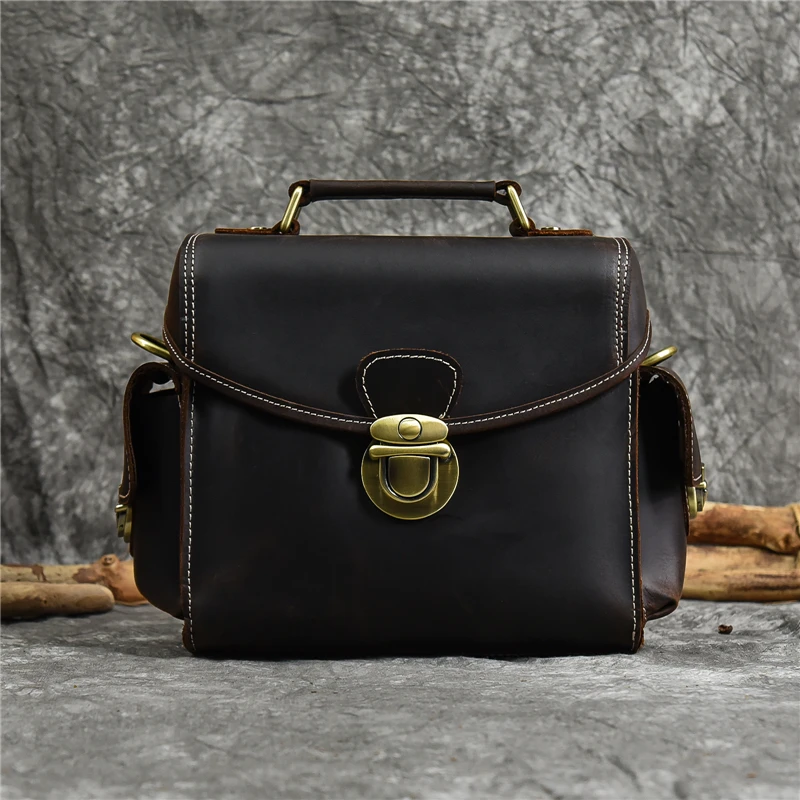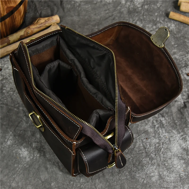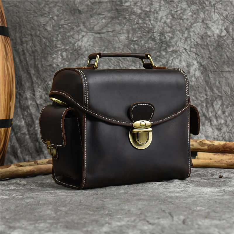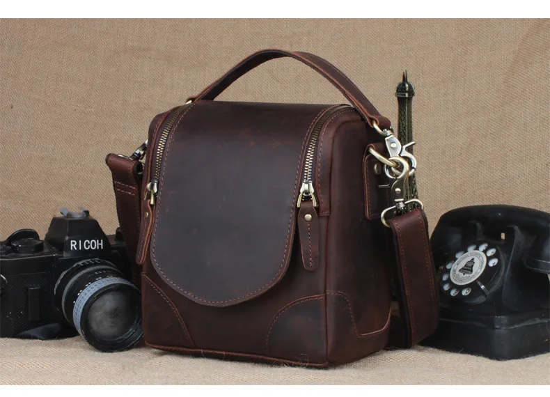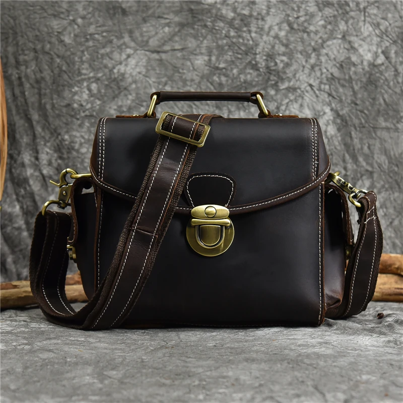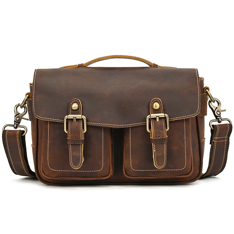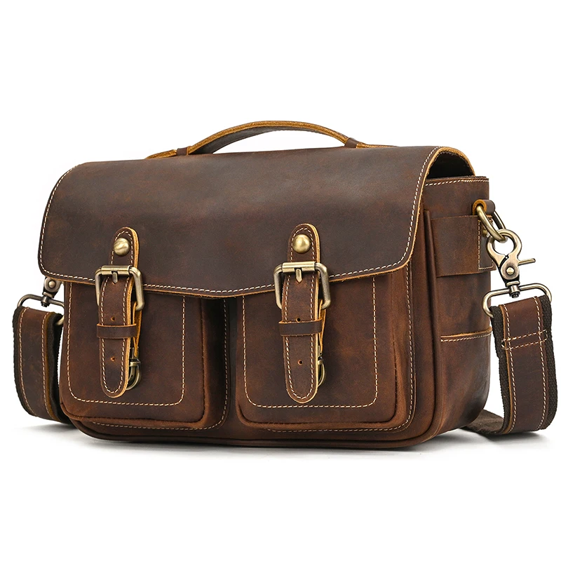 Vintage Men’s Bags Crazy Horse Genuine Leather Male Messenger Bag Shoulder Bags Crossbody Bag for Men Women Leather Camera Bag